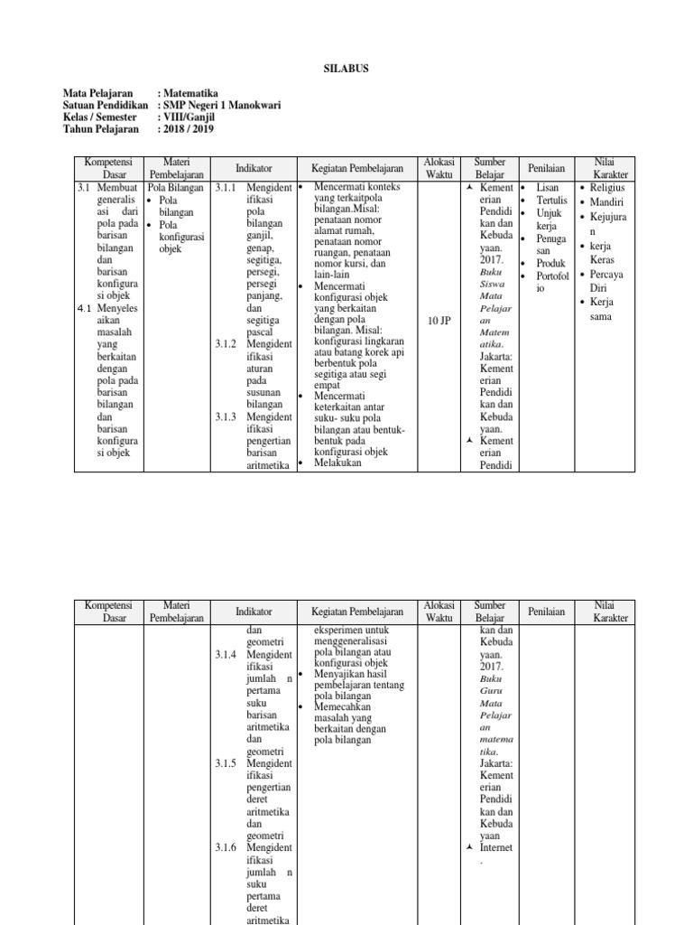 Silabus Pola Bilangan Kelas 8 Kurikulum 2013 Revisi 2017 / Silabus Matematika Smp Revisi 2017 Ok : Materi yang kami bagikan bab 1 pola bilangan (download) a.. Silabus kelas x ptdo kurikulum 2013 revisi. Contoh silabus smp/mts kelas 7 8 9 full mata pelajaran semester 1 dan 2 kurikulum 2013 revisi terbaru. Rpp merupakan perangkat pembelajaran dan perangkat tersebut setiap guru harus menyusun/ mempersiapkannya, supaya dengan adanya perangkat ini proses atau kegiatan pembelajaran bisa. File yang admin bagikan pada artikel ini merupakan bagian dari perangkat pembelajaran yang dibuat sesuai dengan ketentuan permendikbud nomor. Perangkat pembelajaran silabus kelas 7 8 9 k13 revisi 2017.