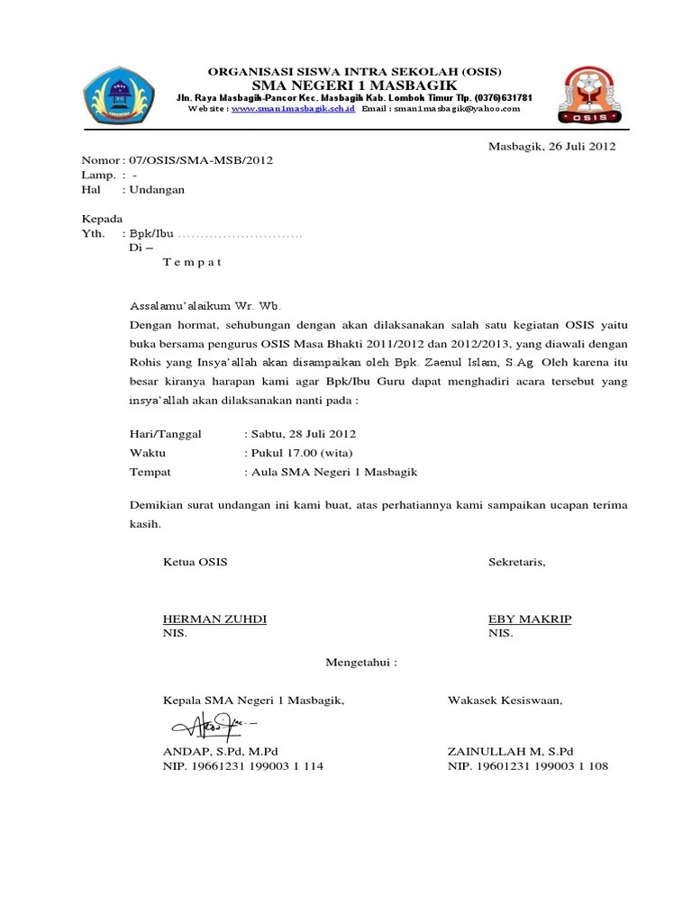 Dan seperti pada surat resmi pada umumnya surat resmi osis juga didalamnya harus memakai bahasa resmi yang baik baku dan bahasa yang sesuai eyd bahasanya singkat jelas dan padat serta terdapat nomor surat kop surat lembaga organisasi yang membuatnya tanda tangan serta cap basah. Isi surat, isi surat harus menjelaskan rencana isi rapat. • performed all engineering functions, like designing product. Sebelumnya perlu diketahui bahwa, osis adalah sebuah lembaga semi independen, yang ada di sebuah sekolah. Sahabat ketik surat yang budiman.